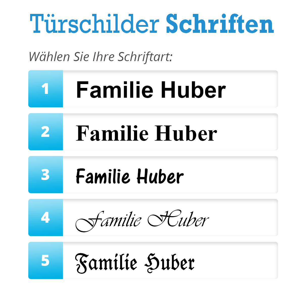 • 5 verschieden Schriften zur Auswahl